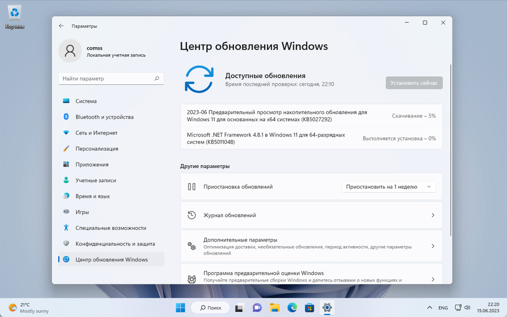 Когда вы увидите, что доступно 2023-06 Предварительный просмотр накопительного обновления для Windows 11 для основанных на x64 системах (KB5027292) нажмите Скачать и установить.