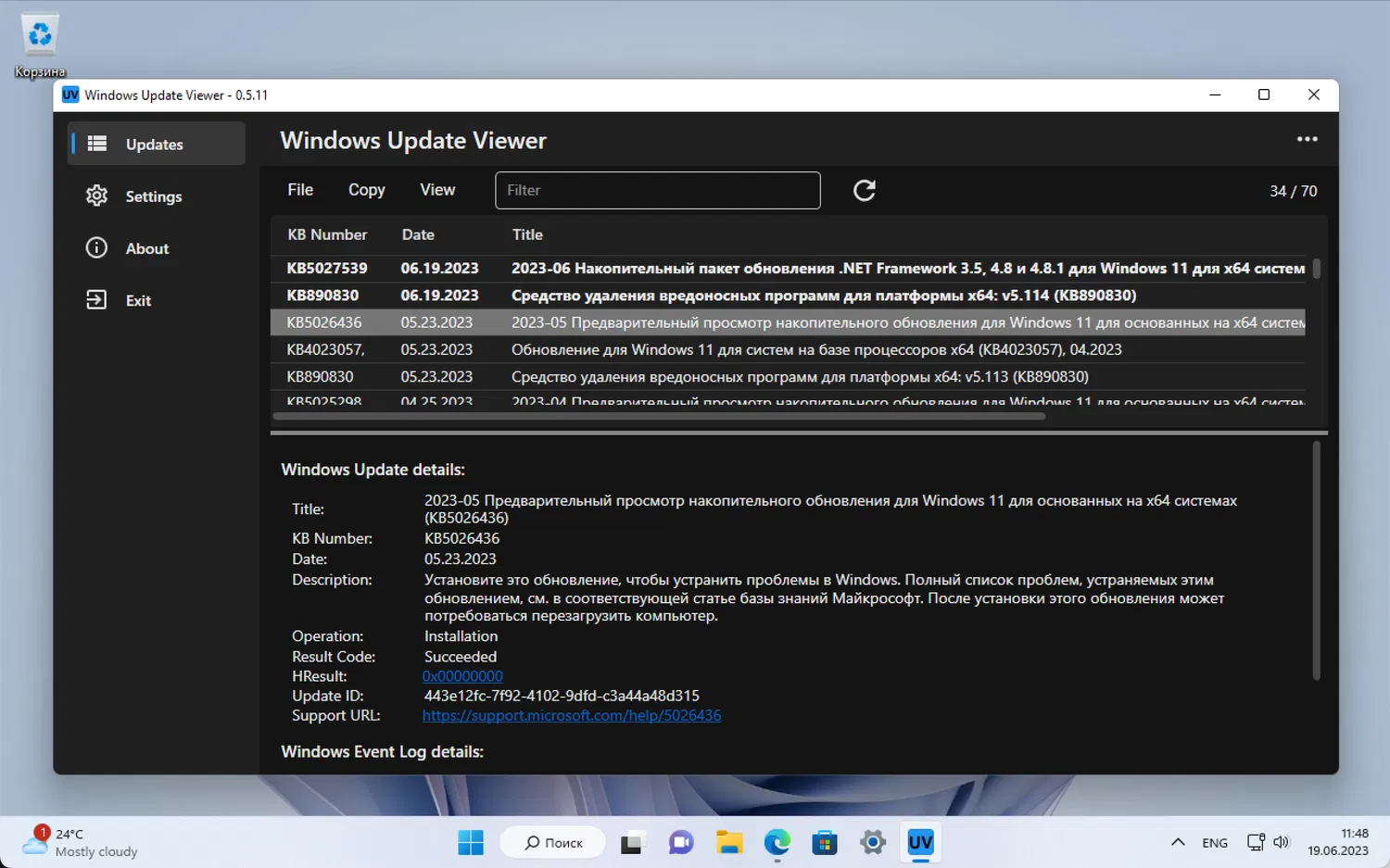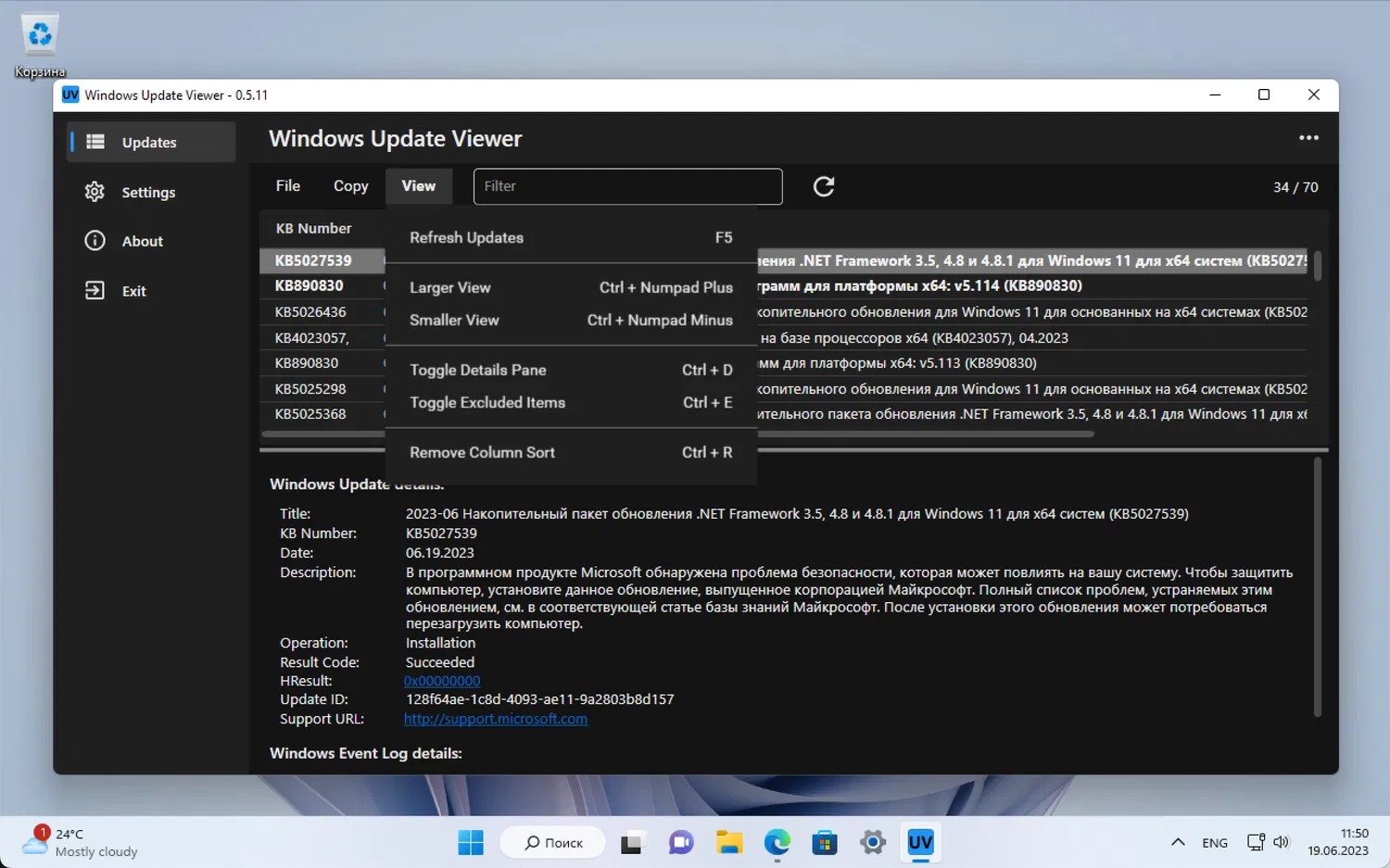 Windows Update Viewer доступен только для Windows 10 и Windows 11. Программа является портативной, т.е. не требует установки, но для ее работы потребуется Microsoft .NET 6.0.