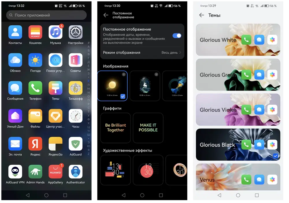 В EMUI 13.1 доступны новые темы оформления. В том числе в новой версии пользовательского интерфейса доступно несколько новых тем функции Always On Display. Например, смартфоны Huawei P60 Pro и Mate X3 получили собственные темы, основанные на новой версии.