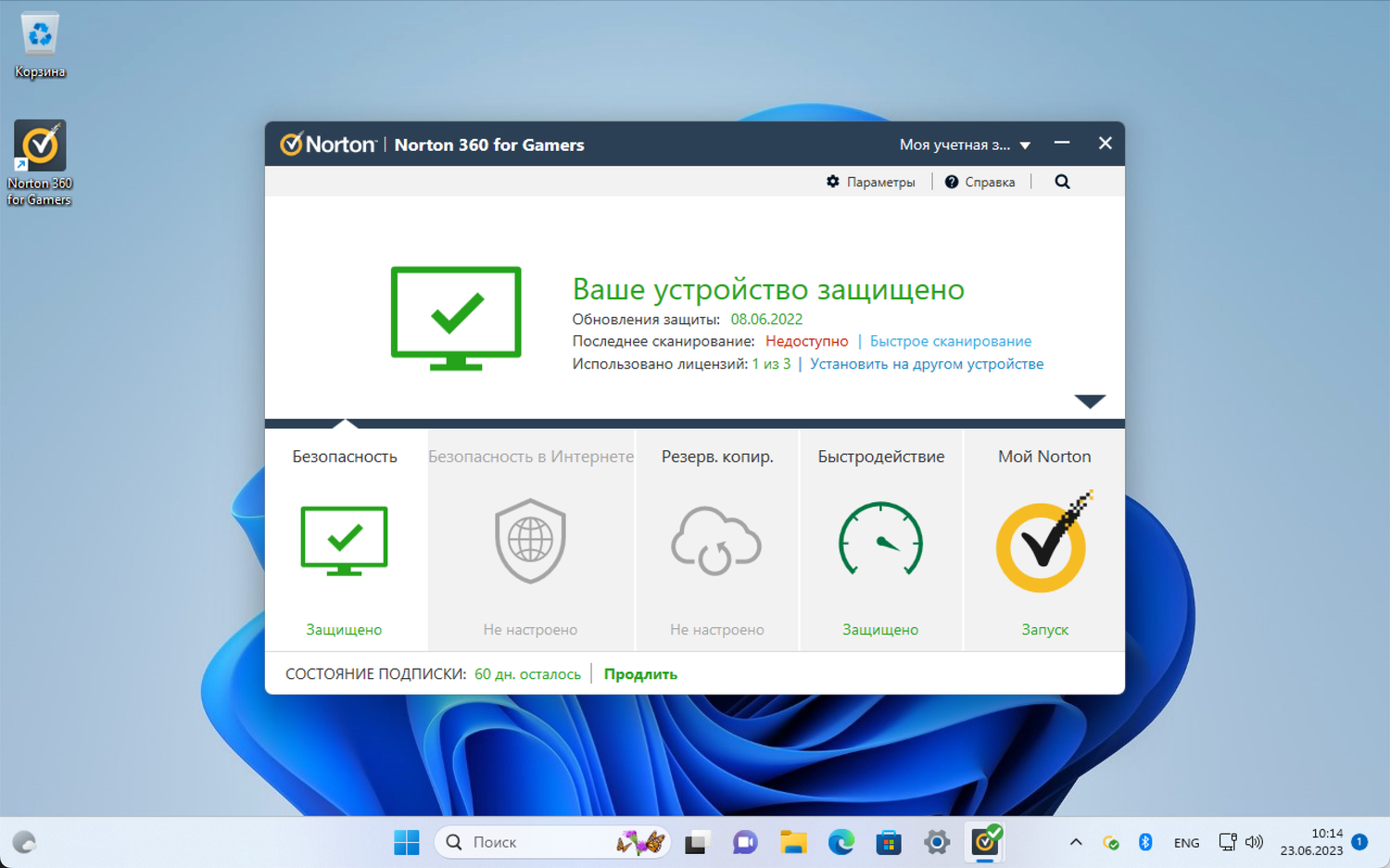 - Вы получаете лицензию Norton 360 for Gamers на 2 месяца (60 дней) для 3 устройств только для домашнего (персонального) использования.