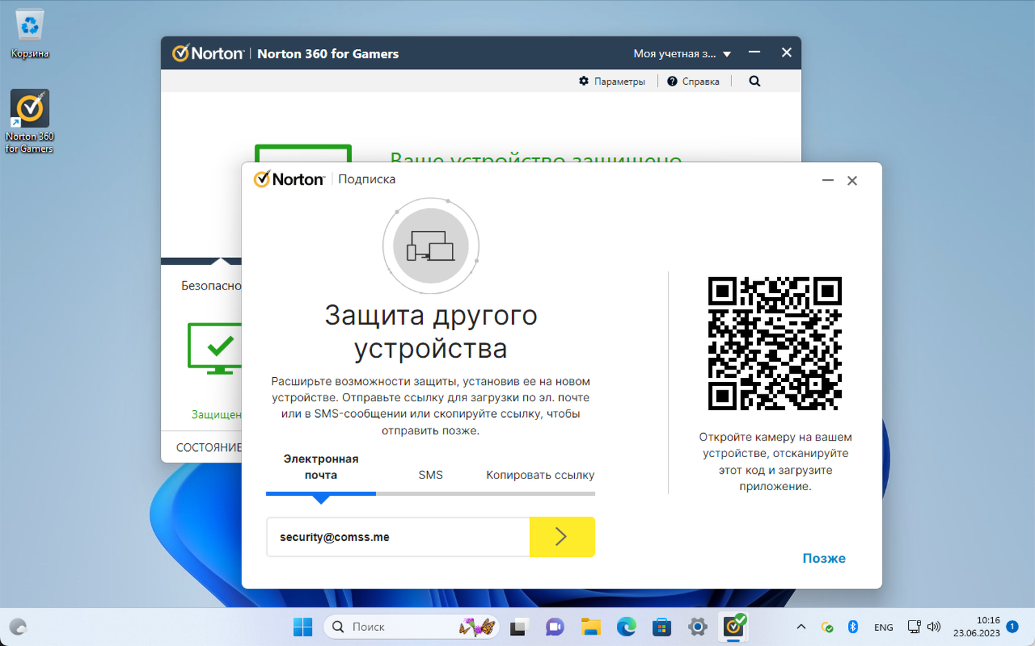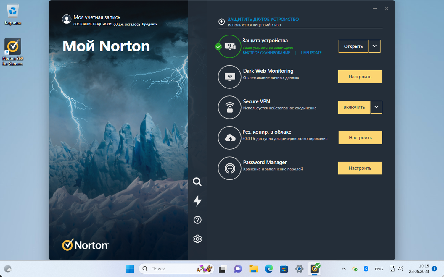 Для получения бесплатной лицензии Norton 360 for Gamers на 60 дней для 3 устройств выполните следующие действия: