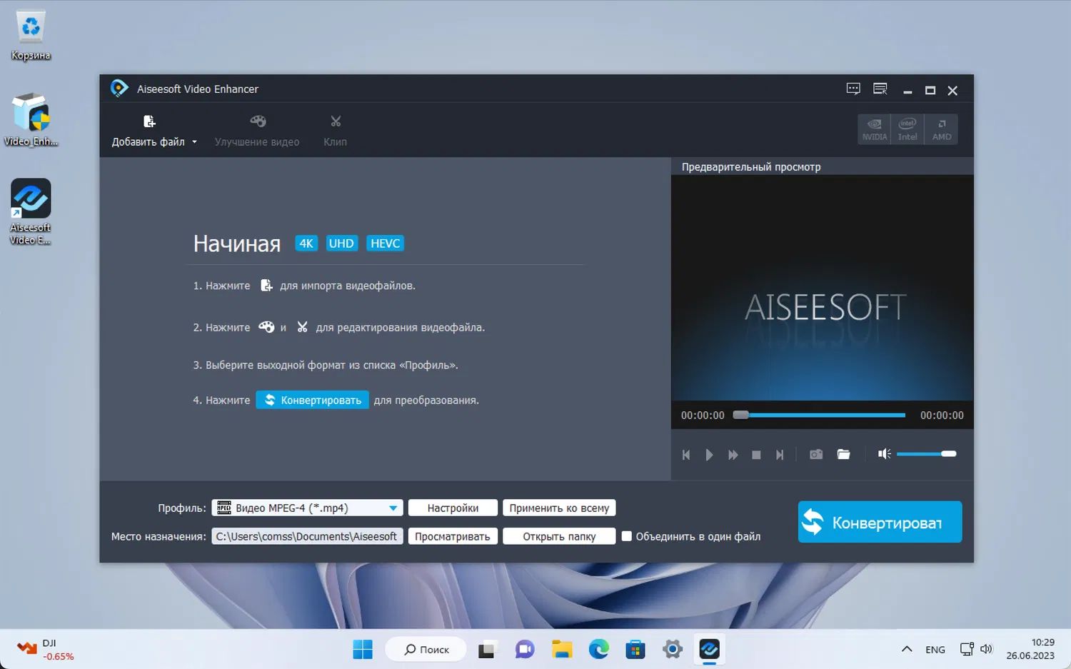 - Предоставляется лицензия Aiseesoft Video Enhancer на 1 год для одного устройства Windows.