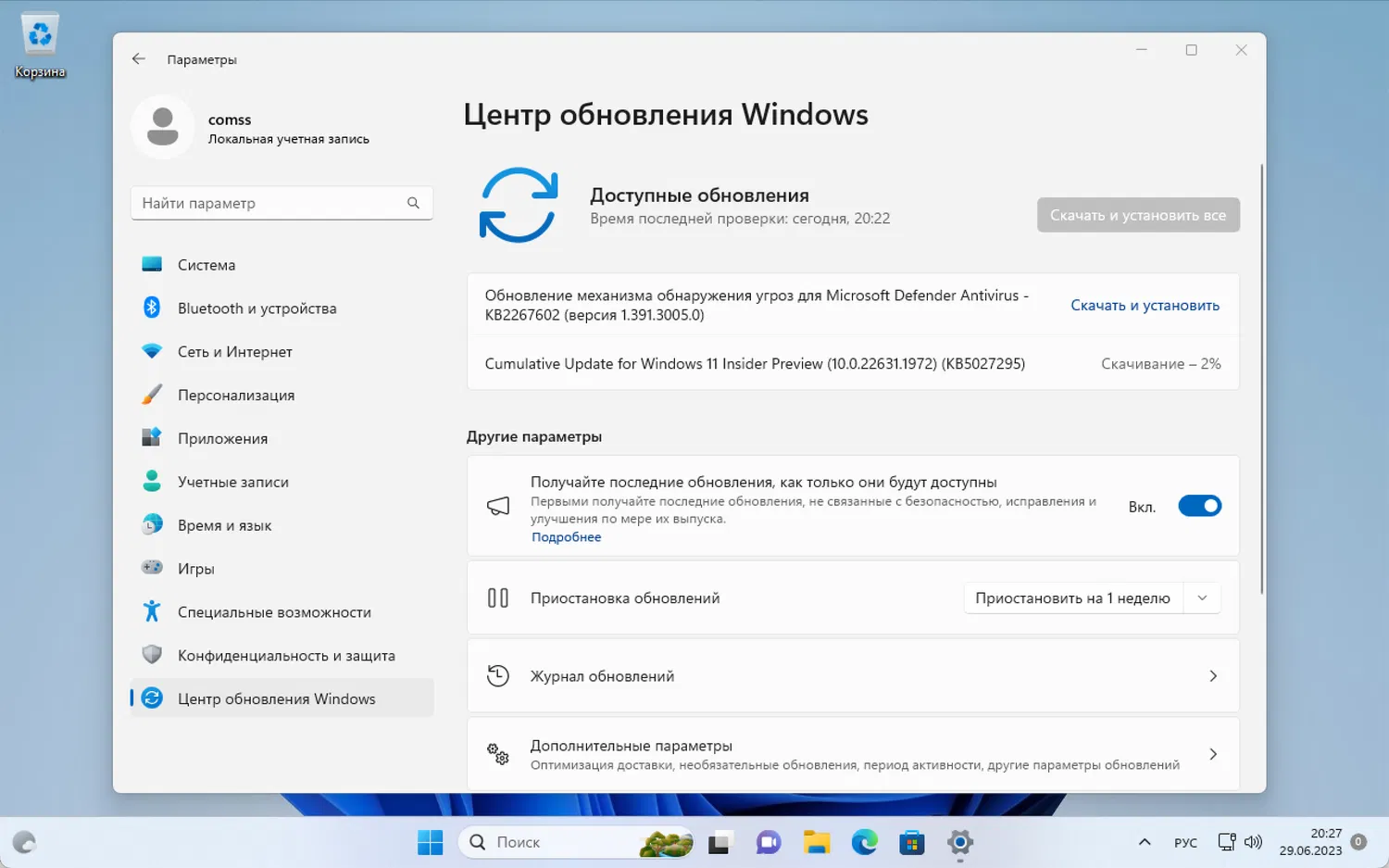 Перейдите в меню Параметры > Центр обновления Windows и нажмите Проверить наличие обновлений.