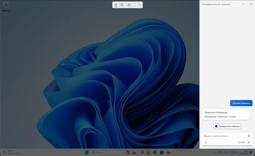Например, если попросить сделать скриншот, то Copilot вызывает инструмент «Выделение». Остается кликнуть мышью, чтобы сохранить изображение. А если попросить сменить цветовую схему на темную, ИИ-ассистент откроет соответствующую опцию изменения настроек.