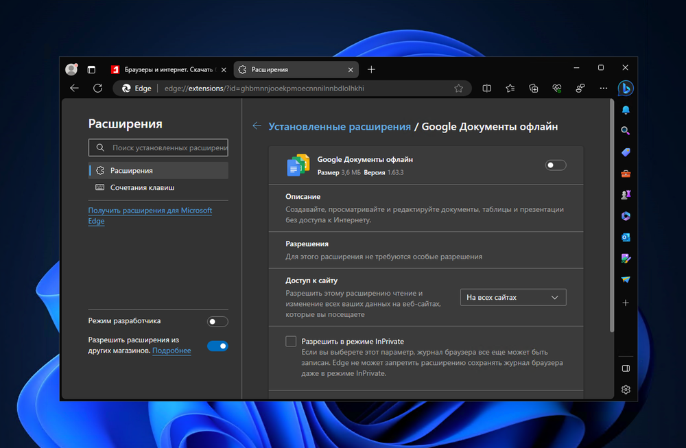 Расширение Google Docs Offline будет предустановлено и будет отключено по умолчанию для пользователей Microsoft Edge. Обратите внимание: этот функционал внедряется постепенно (контролируемое развертывание). Если вы не видите эту функцию, проверьте её наличие позже в процессе внедрения.
