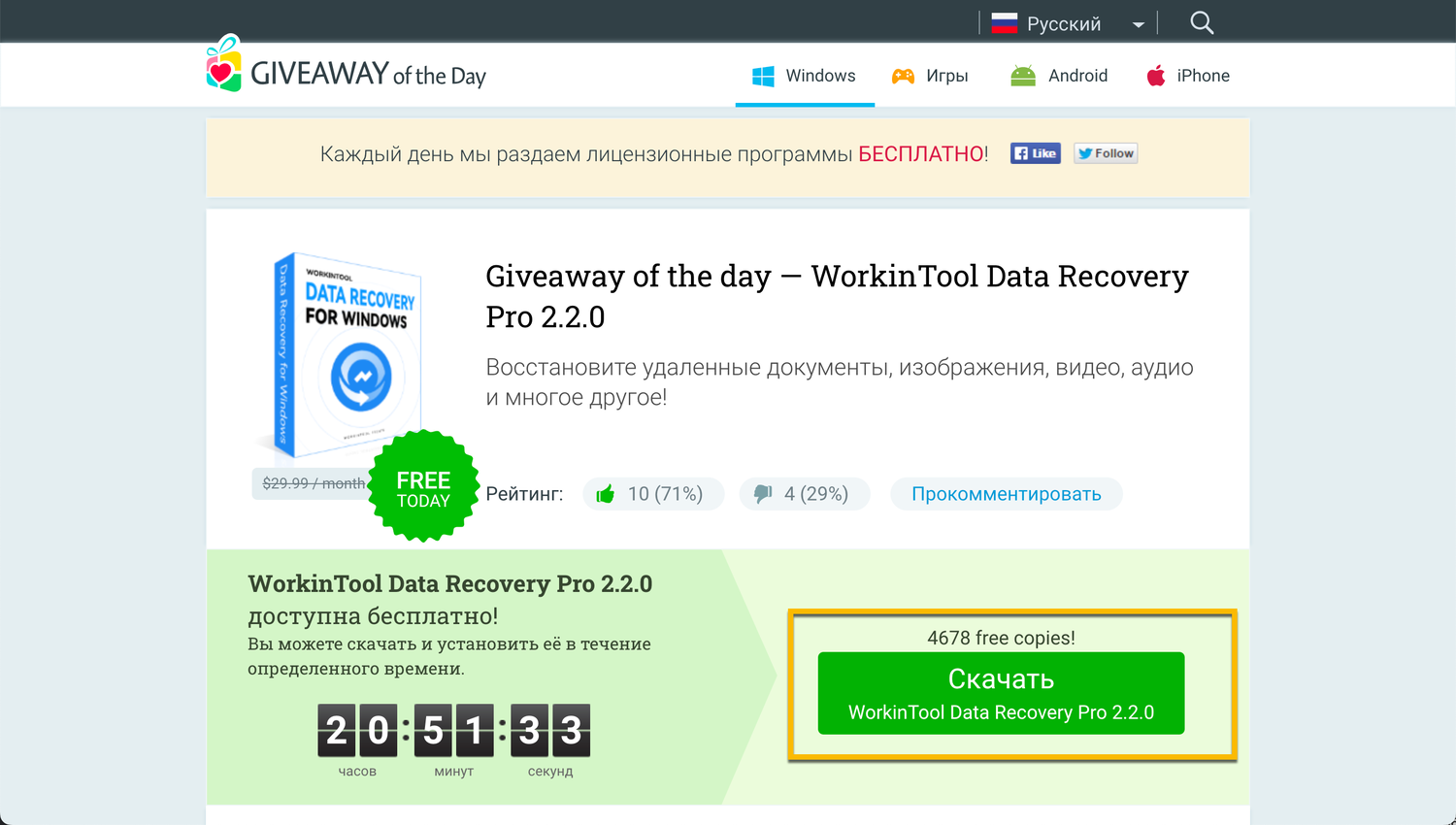 - Перейдите на страницу промо-акции и выберите Скачать WorkinTool Data Recovery Pro 2.2.0.