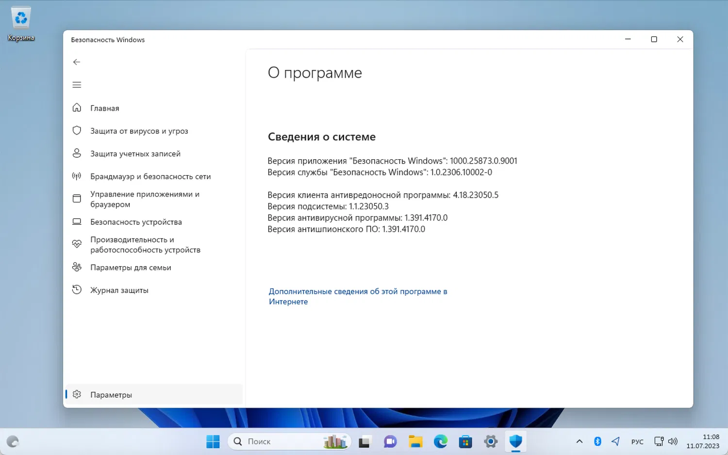 Выбрав Параметры > О приложении в окне «Безопасность Windows», можно узнать текущие установленные версии. После установки обновления на затронутом устройстве версия службы «Безопасность Windows» должна быть 1.0.2306.10002.