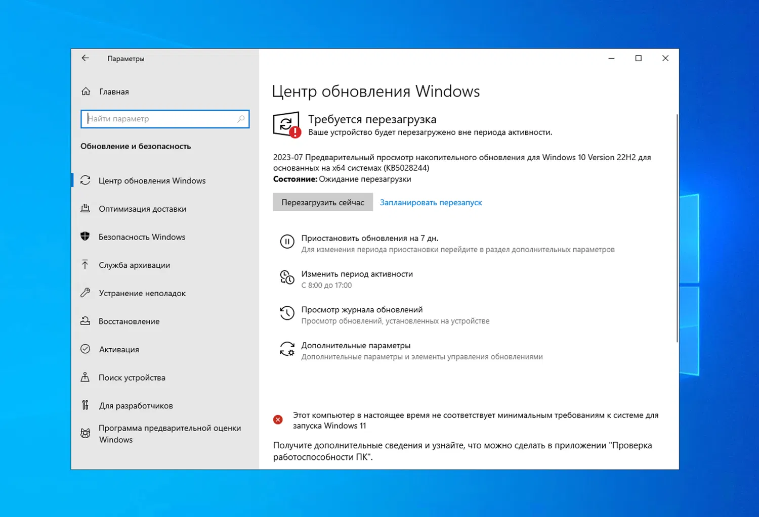Для завершения установки потребуется перезагрузка компьютера. После обновления номер сборки Windows 10 поменяется на 19045.3271 для Windows 10, версия 22H2.