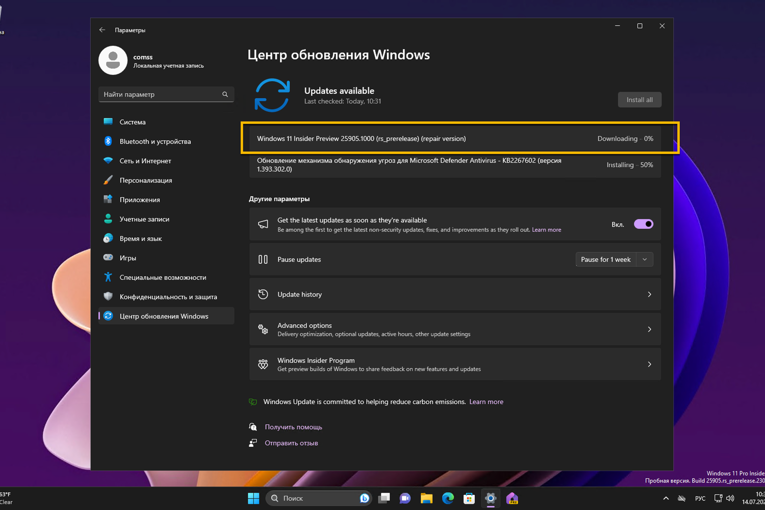 Все выглядит как обычное обновление сборки в программе Windows Insider или установка обновления функций для стабильной версии.