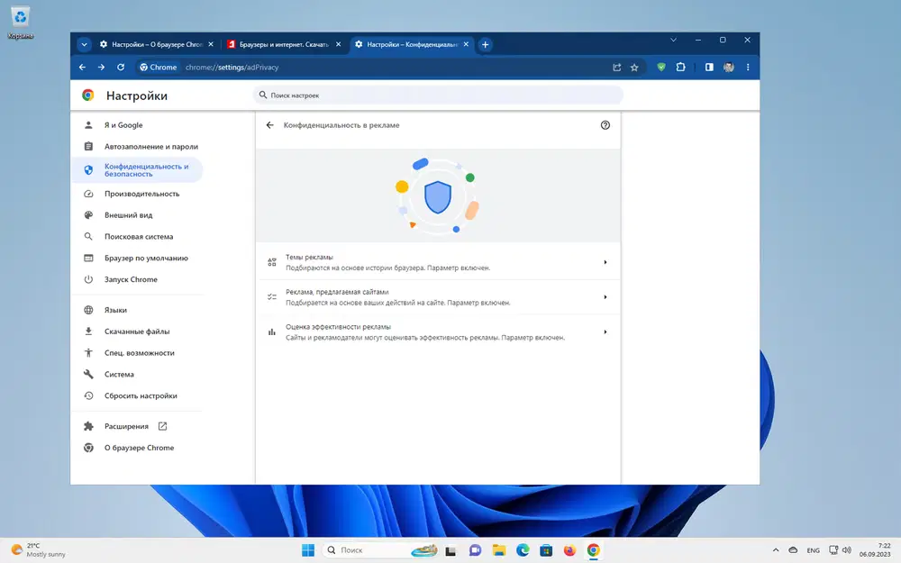 Когда вы проверите текущие настройки Privacy Sandbox в Chrome, то заметите, что все они связаны с рекламой. Доступны страницы: Темы рекламы, которая отражает интересы пользователя на основе его истории просмотров, Реклама, предлагаемая сайтами, которая позволяют посещенным сайтам определить интересы пользователя, и Оценка эффективности рекламы, которая позволяет сайтам и рекламодателям анализировать метрики рекламы.