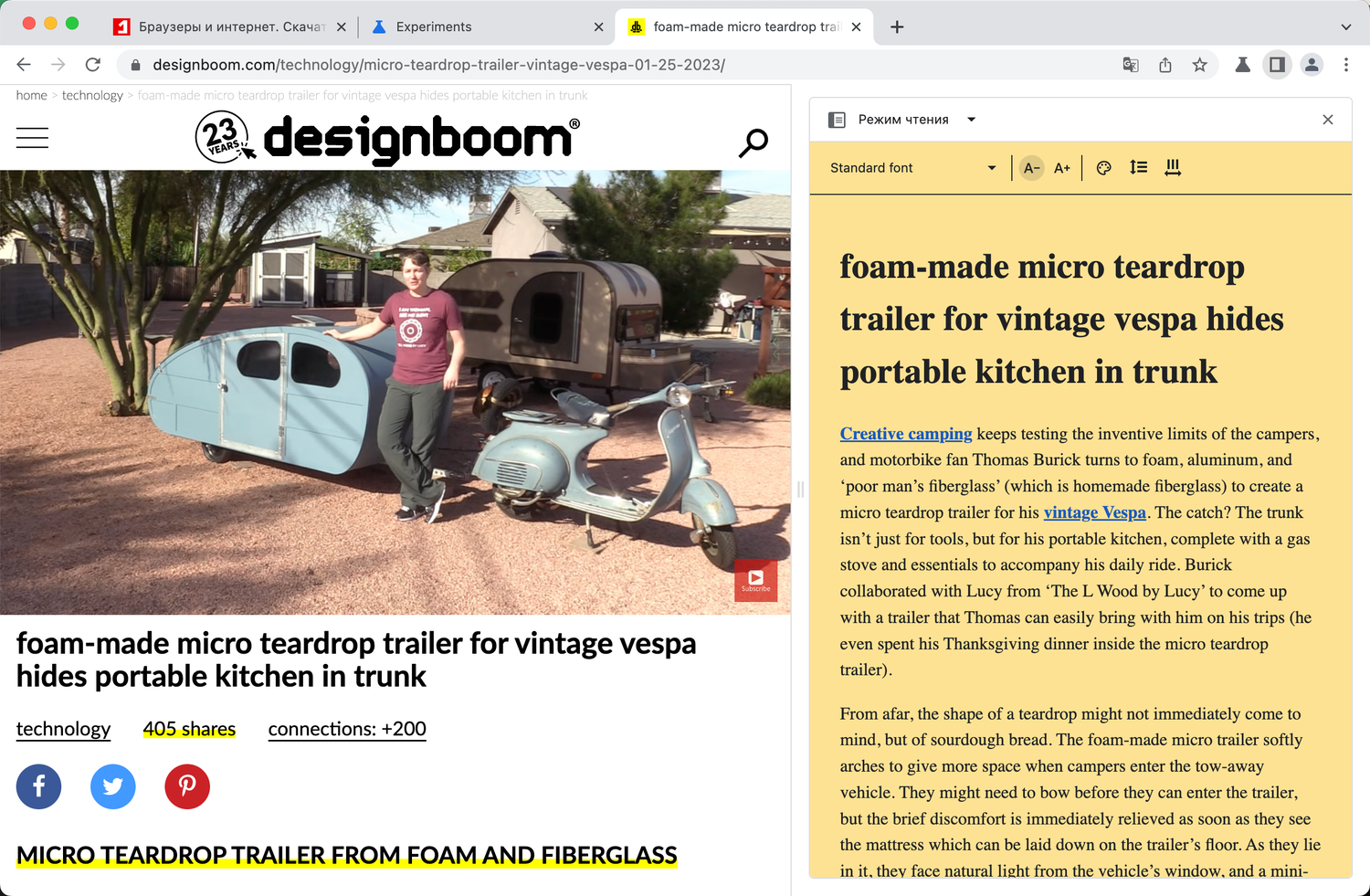 Google анонсировал новый режим чтения в марте 2023 года, но пока он будет доступен только в настольных версиях Chrome. Режим Чтения можно вызывать с помощью выпадающего меню на боковой панели Chrome. При его активации в браузере будет отображена упрощенная версия веб-страницы с возможностью изменить цвет фона, цвет шрифта и высоту строки для комфортного чтения. Однако, исходная страница с раздражающими рекламными объявлениями останется видимой.