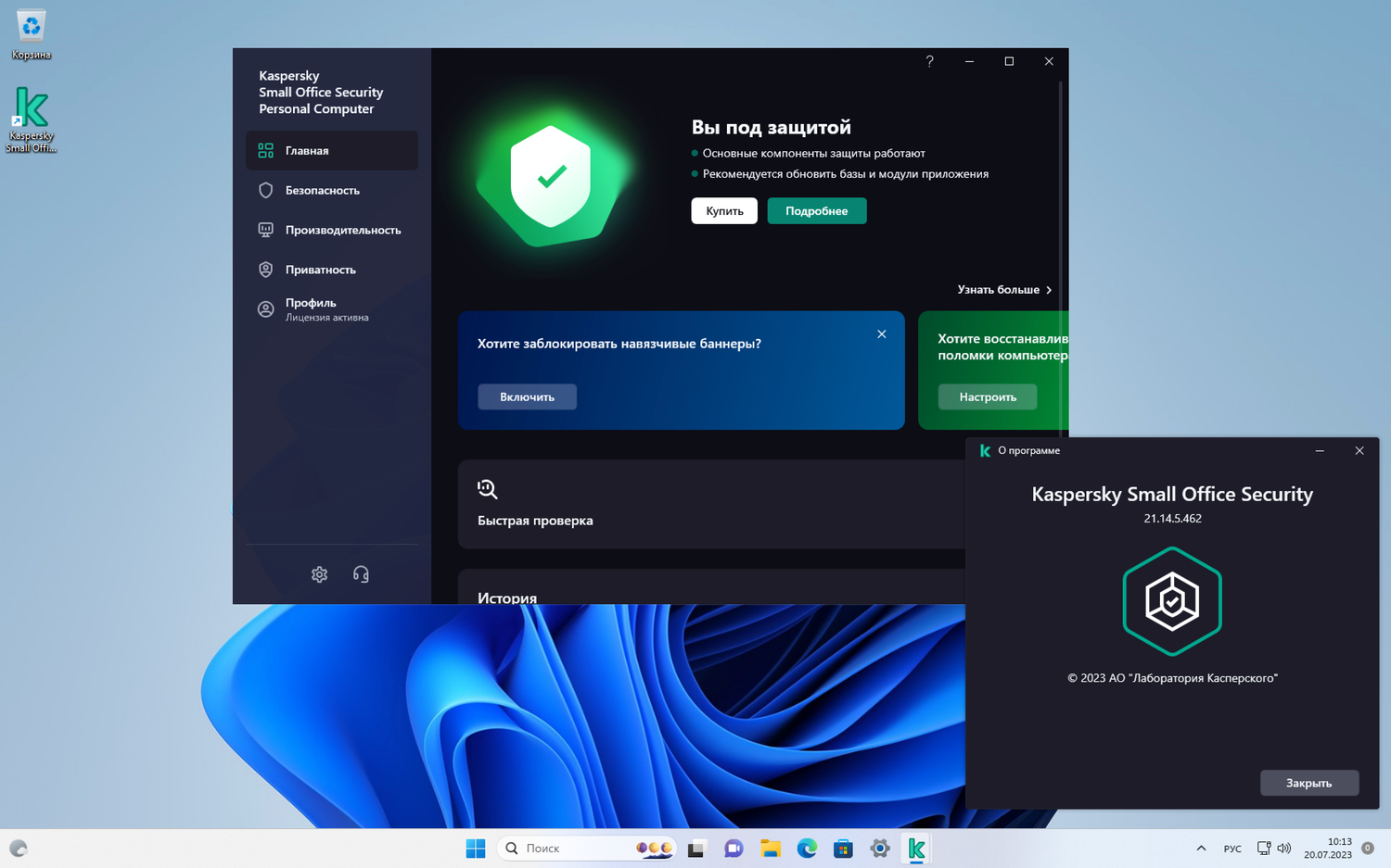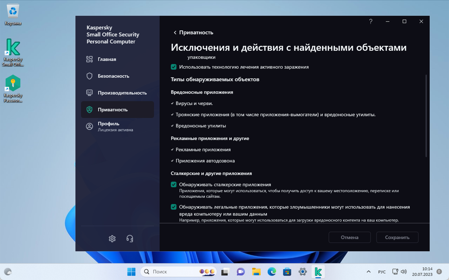 - Добавлена функция "Контроль нарушений" в раздел "Приватность". Она позволяет обнаруживать установленные легальные приложения, которые потенциально могут быть использованы злоумышленниками для нанесения вреда компьютеру или данным пользователя.