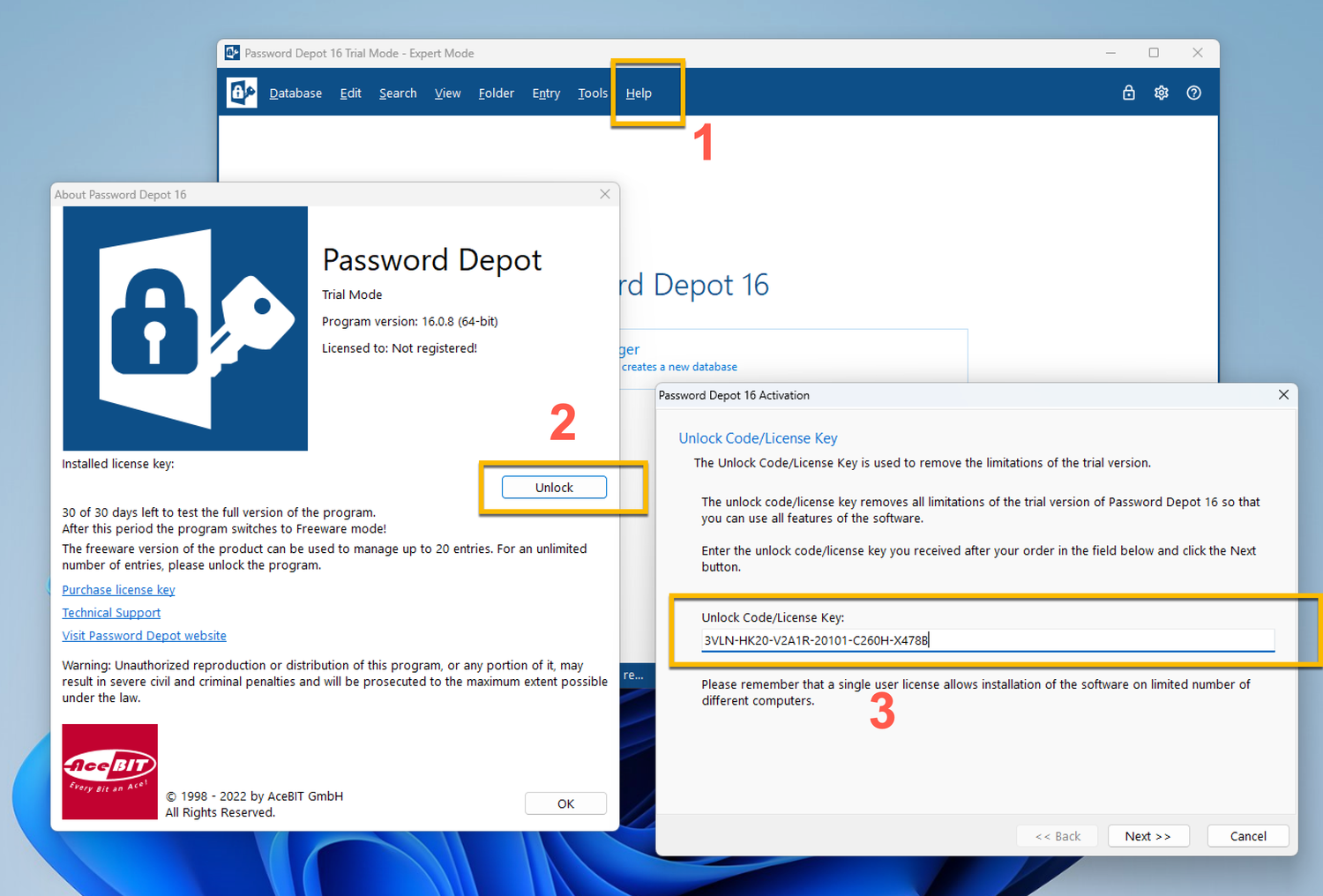 Для получения бесплатной лицензии AceBIT Password Depot 16 выполните следующее:
