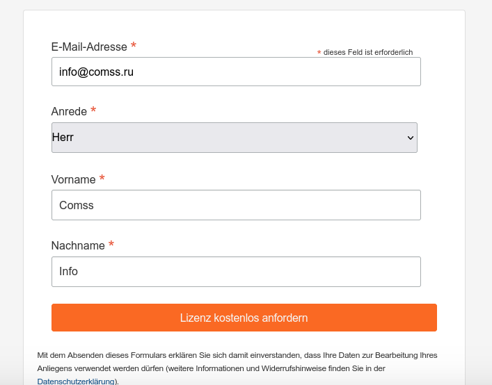 - Отключите блокировщик рекламы. Перейдите на страницу промо-акции. Заполните адрес электронной почты, выберите пол, напишите свое имя и фамилию, нажмите кнопку "Lizenz kostenlos anfordern", кликните по ссылке из первого пришедшего письма, подтвердите что не робот и заберите из второго письма лицензионный ключ.
