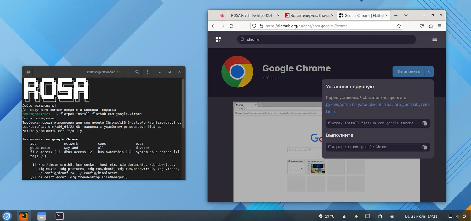 Пользователи рабочего окружения KDE Plasma могут установить магазин приложений Discover с интеграцией поддержки репозитория Flathub.