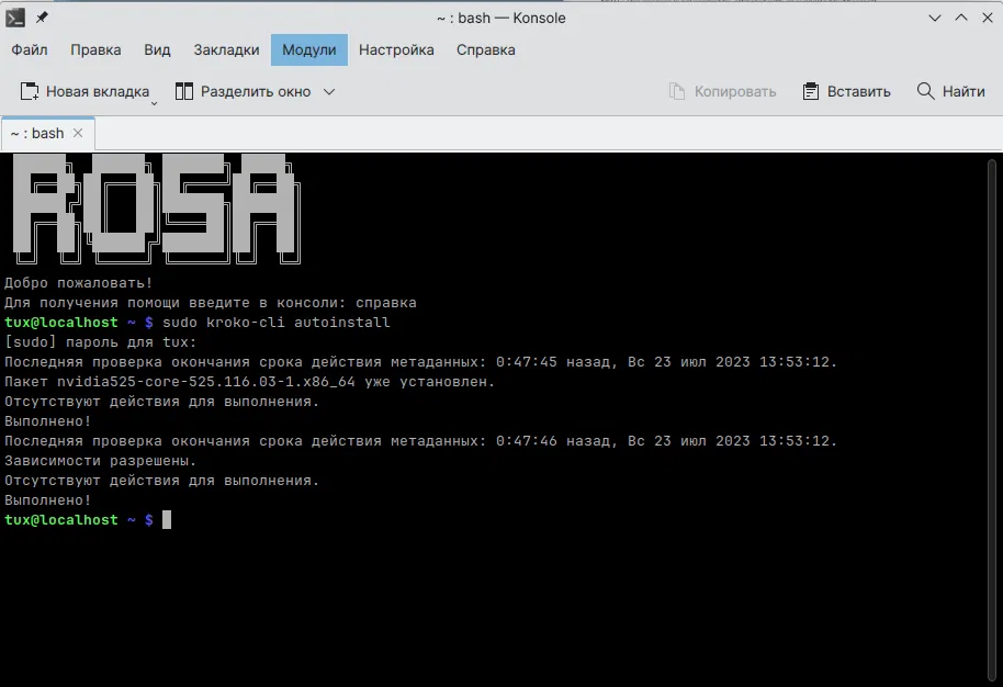 Пользователи видеокарт Nvidia, в том числе пользователи гибридных систем, использующие Nvidia могут воспользоваться инструментом kroko-cli для установки последней доступной версии драйвера Nvidia.