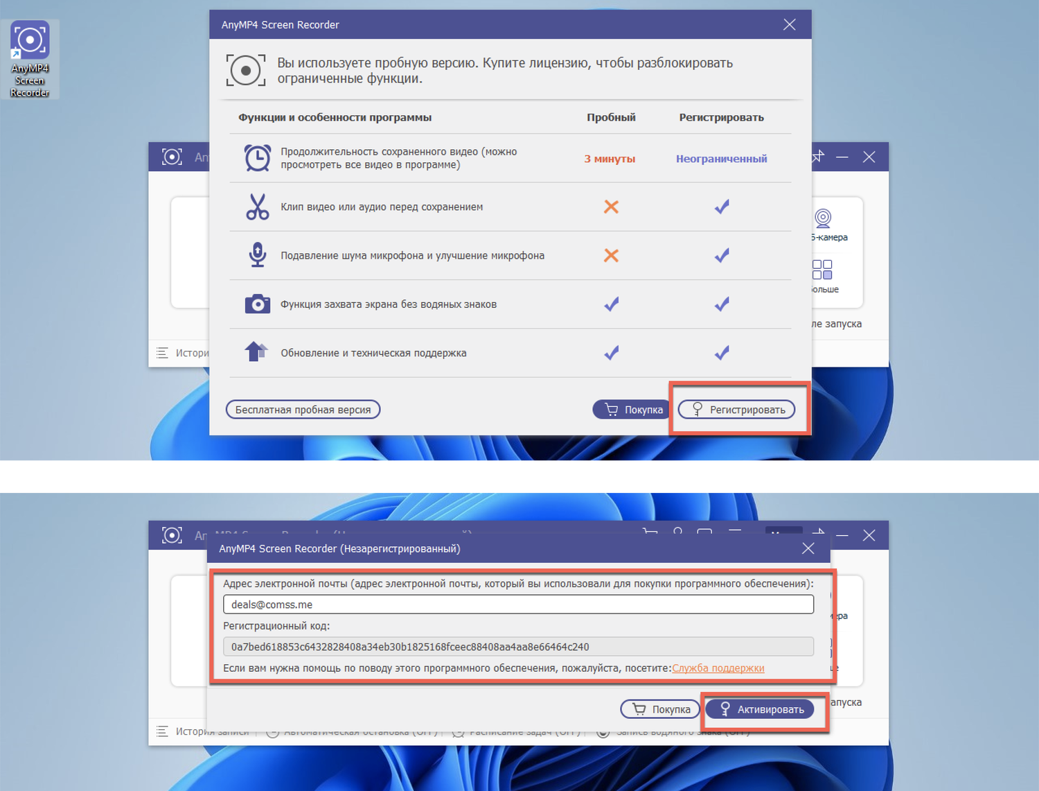 Бесплатная лицензия AnyMP4 Screen Recorder для Windows