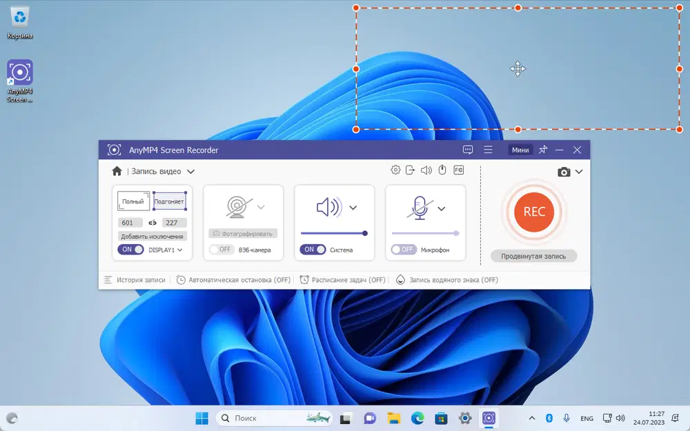 Основные возможности AnyMP4 Screen Recorder для Windows