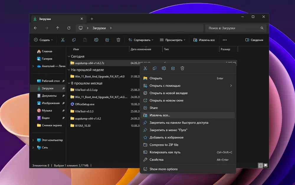 В Windows 11, версия 23H2, была добавлена встроенная поддержка для множества дополнительных форматов архивных файлов.