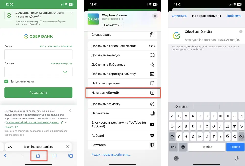 Как установить веб-приложение Сбербанк Онлайн наiPhone