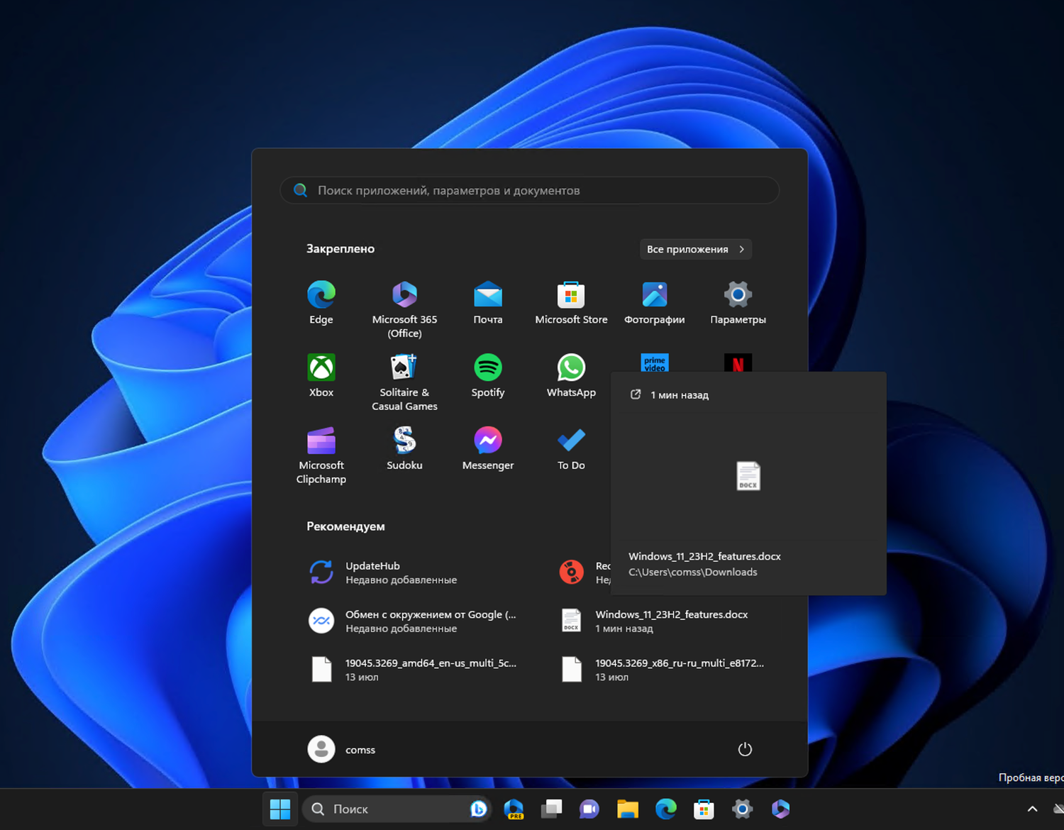 Windows 11, Версия 22H2 (Сборка ОС 23511.1000)