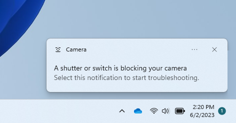 - В случае обнаружения проблемы с потоковой передачей с камеры, такой как невозможность запуска камеры или закрытый затвор камеры, появится всплывающее диалоговое окно. В нём будет рекомендация запустить автоматический помощник "Получить помощь" для решения этой проблемы.