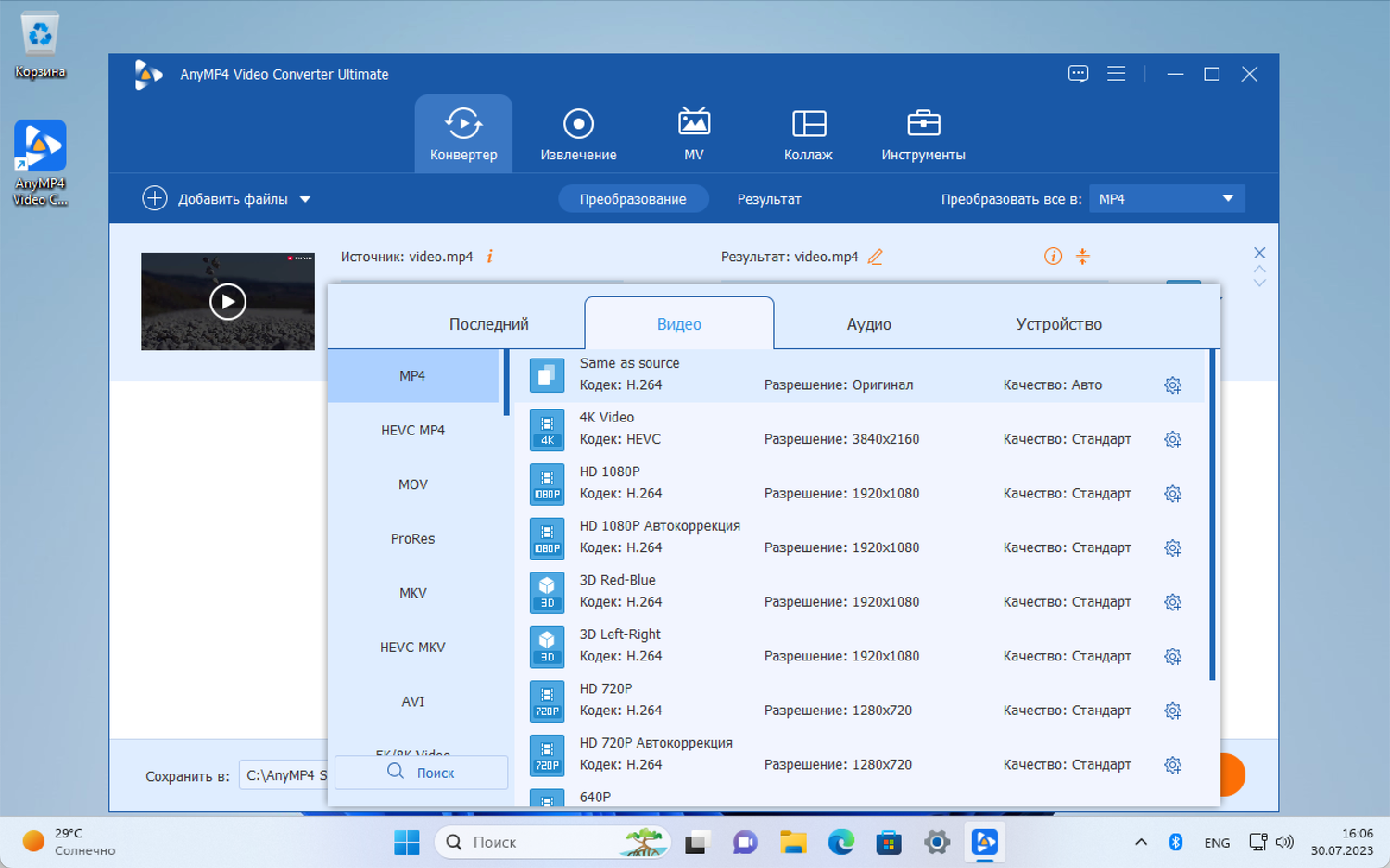 Основные функции программы AnyMP4 Video Converter Ultimate: