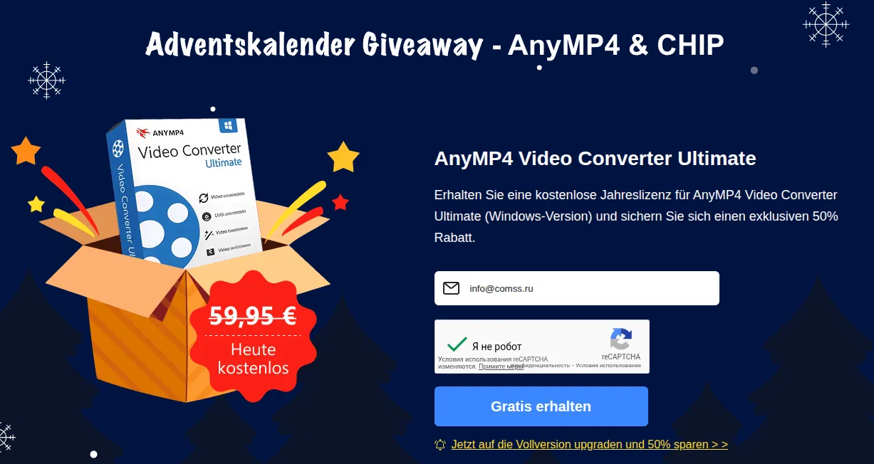 Для получения бесплатной лицензии AnyMP4 Video Converter Ultimate для Windows на 1 год выполните следующие действия: