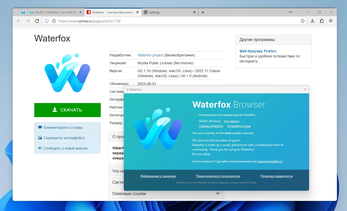 - Обновление логотипа: Возможно, логотип Waterfox будет обновлен в предстоящем бета-релизе. Следите за новостями, чтобы увидеть, как будет выглядеть новый дизайн.
