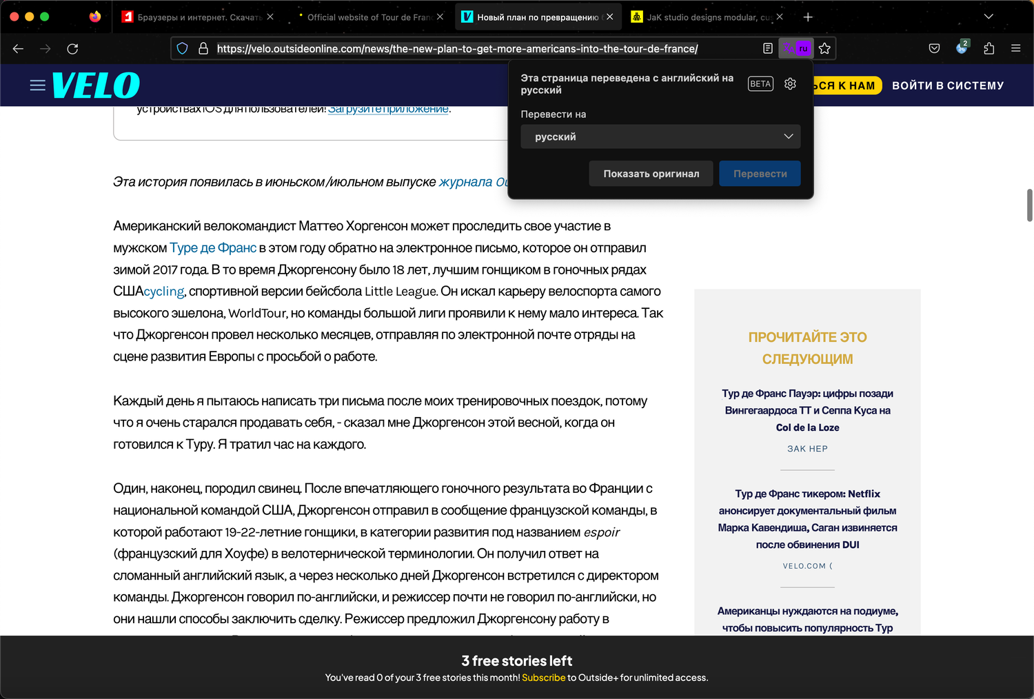 - Отсутствует опция перевода выделенного текста, которая отображает оригинал и переведенную версию во всплывающем окне.
