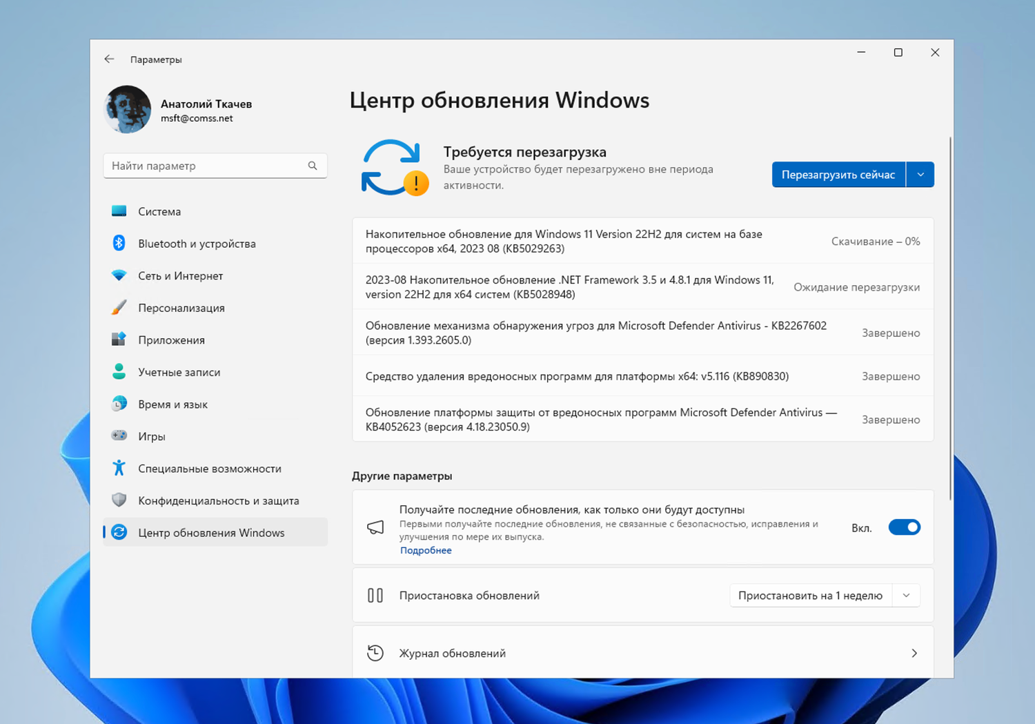 Для завершения установки потребуется перезагрузка компьютера. После обновления номер сборки Windows 11 поменяется на 22621.2134.