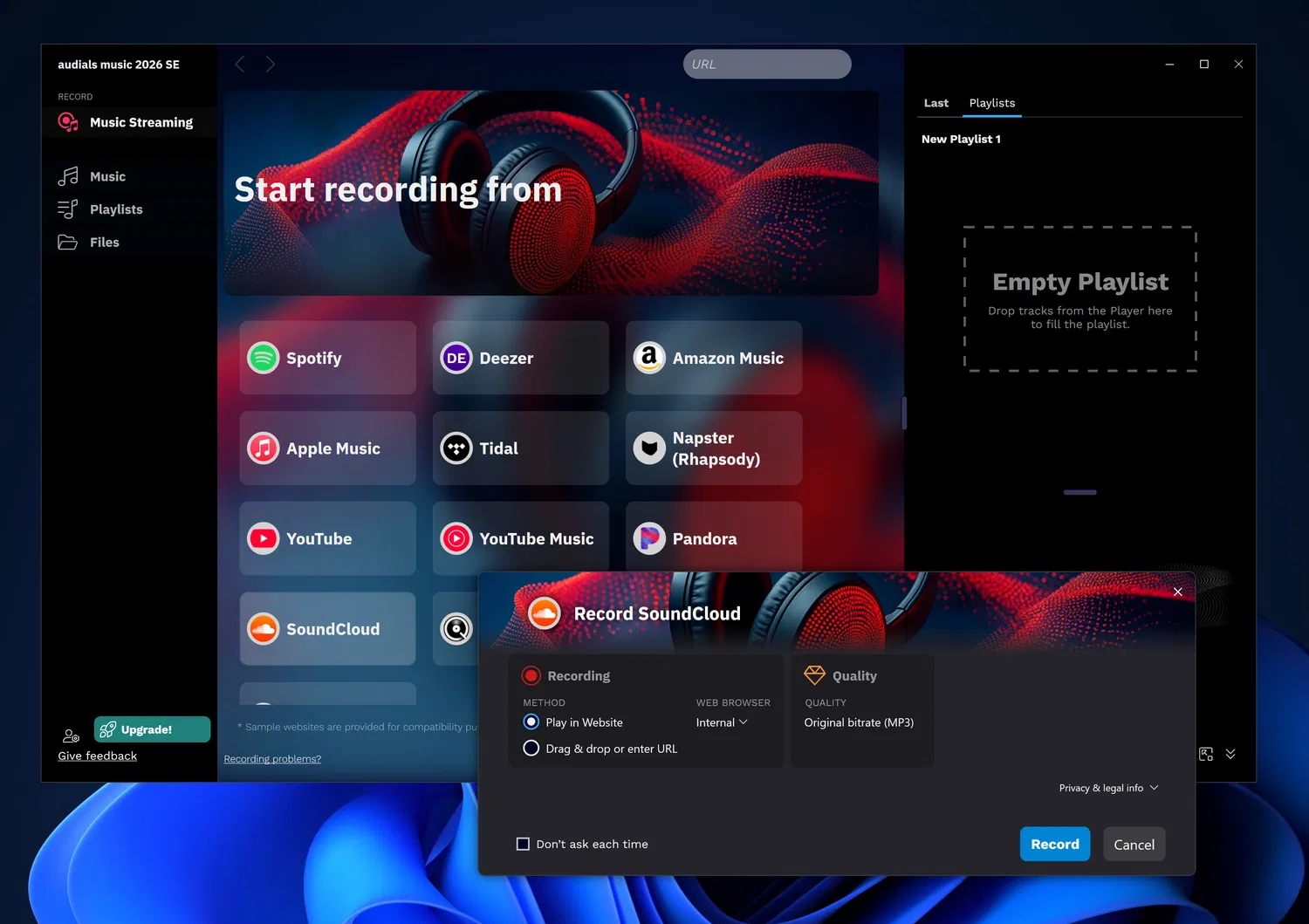 Основные функции Audials Music 2026