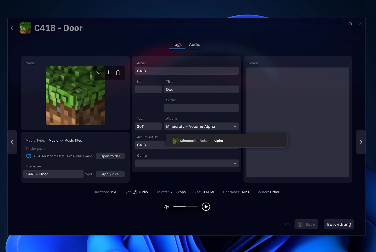 - Функция массового редактирования упрощает управление большими музыкальными коллекциями.