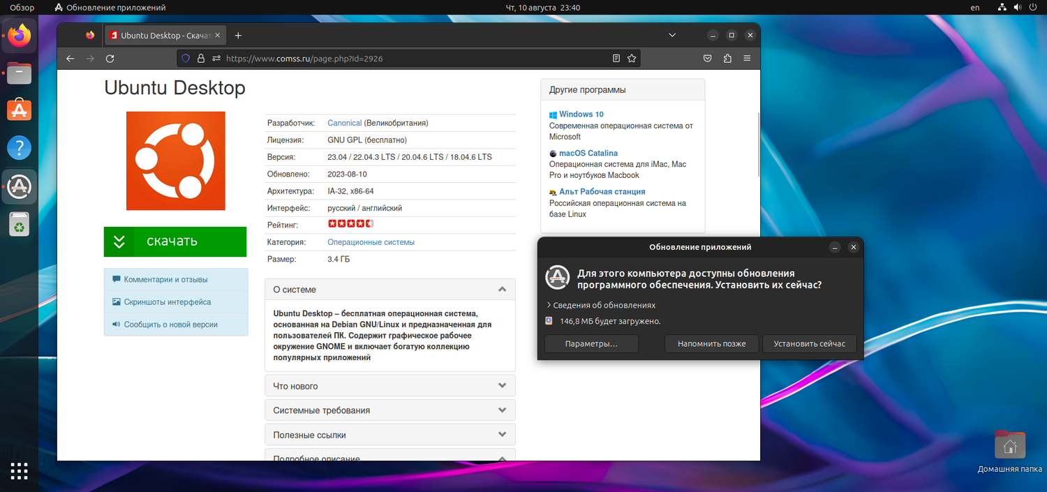 Если у вас уже установлена версия Ubuntu 22.04.2 LTS, то нет необходимости скачивать новые образы ISO. Обновите установленную операционную систему Ubuntu 22.04, выполнив команду sudo apt update && sudo apt full-upgrade в приложении Терминал или используя утилиту Обновление приложений.