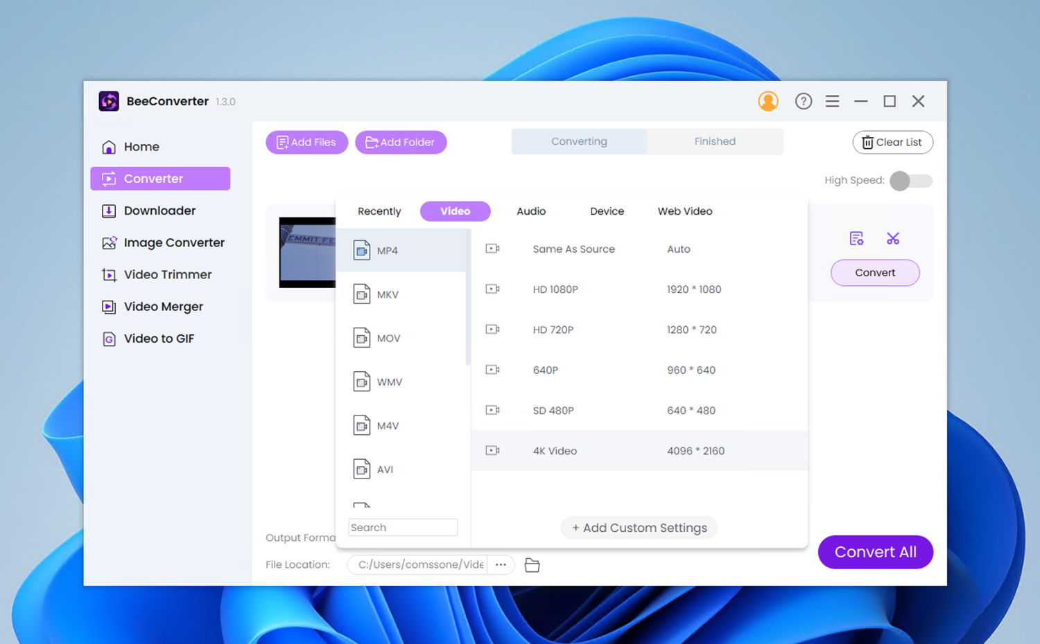 - Высокое качество: BeeConverter Pro поддерживает конвертацию HD/4K видео без потери качества.