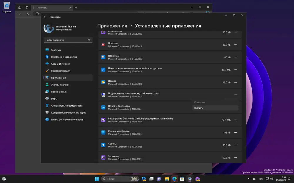 Новейшая предварительная сборка Windows 11 Insider Preview Build 25931 позволяет удалять еще больше стоковых приложений. Microsoft упоминает об этом в официальном журнале изменений.