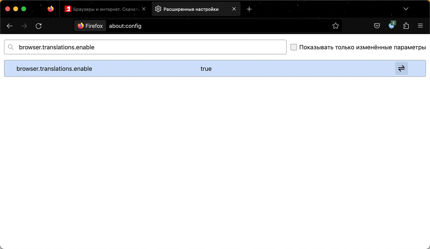 Установка значения true включает функцию перевода. Установка значения false отключает ее.