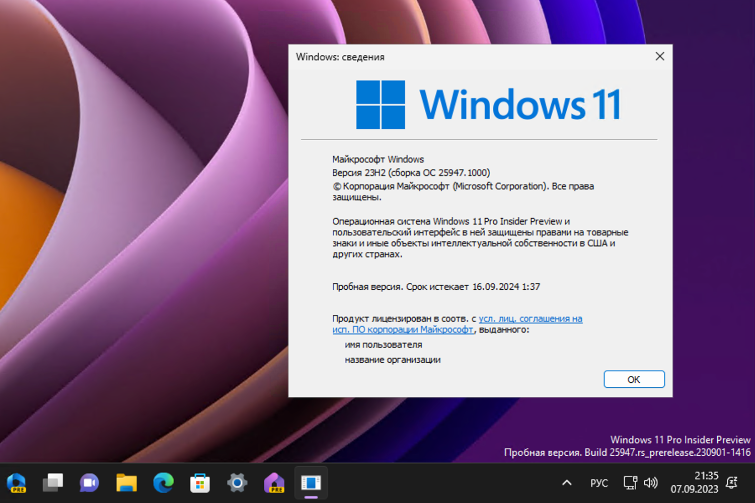 Полный номер сборки: 10.0.25947.1000.rs_prerelease.230901-1416