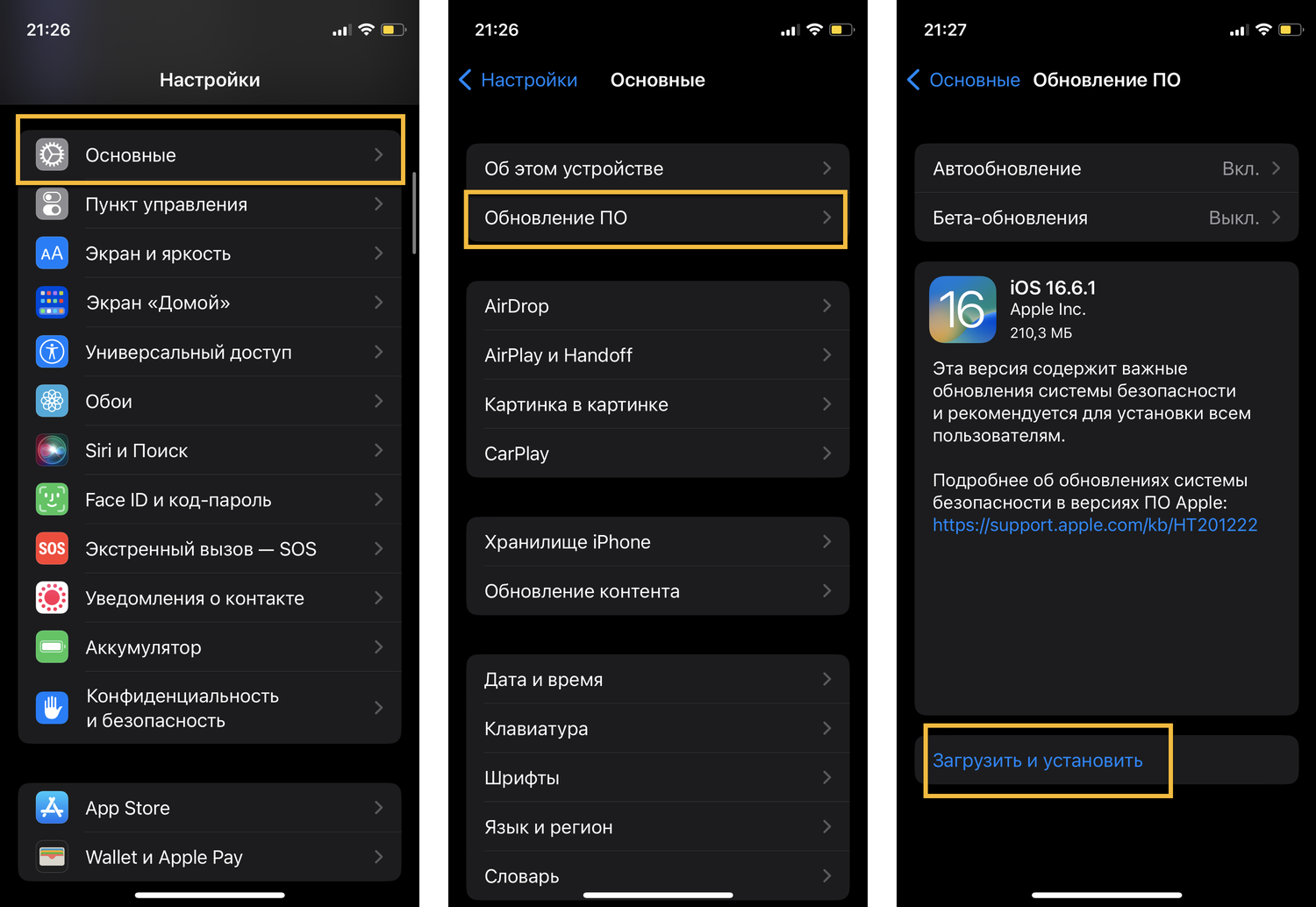 Пользователи могут скачать обновления iOS 16.6.1 и iPadOS 16.6.1 на соответствующих устройствах iPhone и iPad по воздуху, перейдя в меню Настройки > Основные > Обновление ПО. Для установки выберите Загрузить и установить. Из-за большого спроса на обновления может потребоваться несколько минут, чтобы они стали доступны всем пользователям.