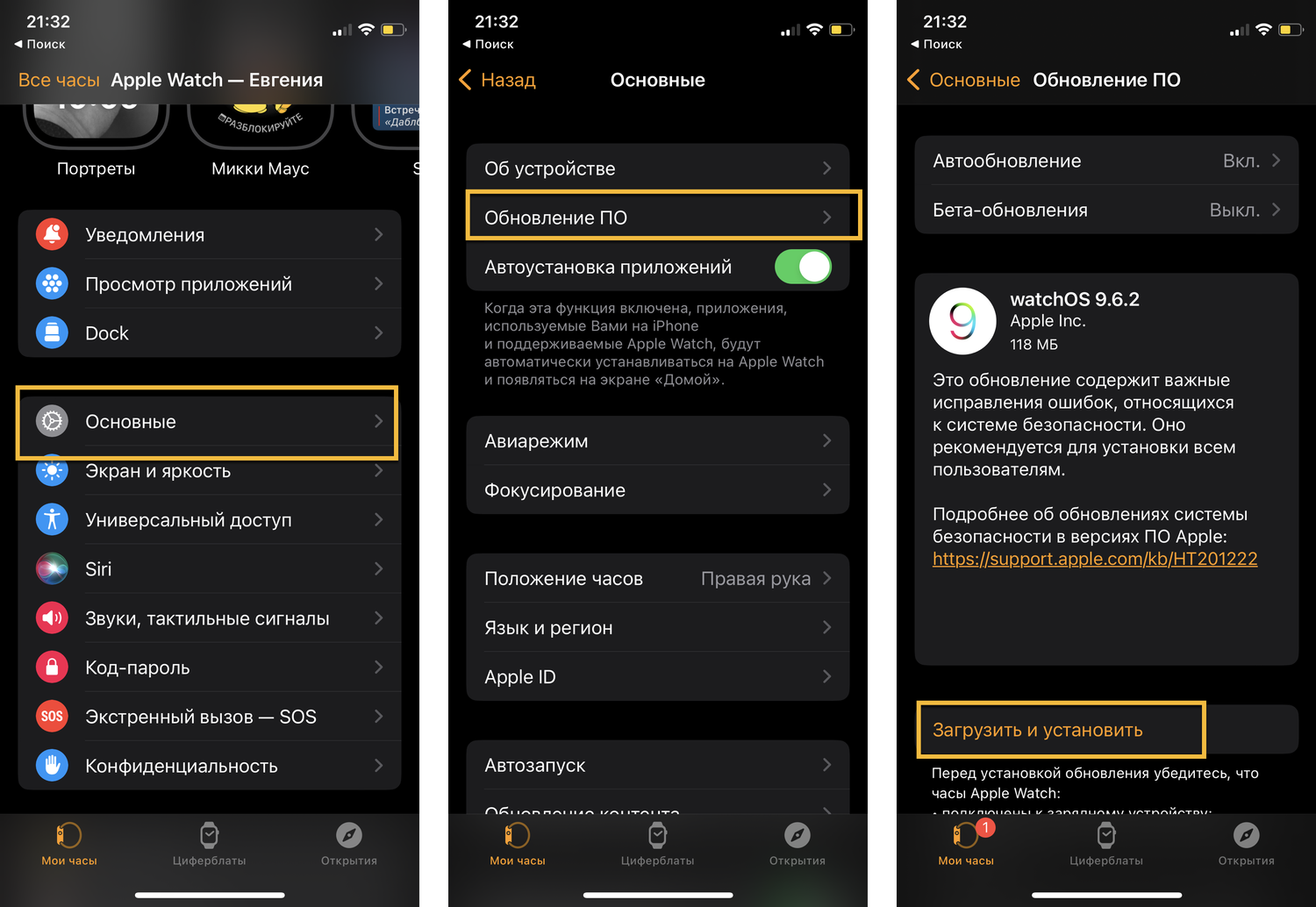 Обновление watchOS 9.6.2 можно скачать бесплатно через приложение Apple Watch на iPhone, открыв его и перейдя в меню Основные > Обновление ПО. Для установки нового программного обеспечения на Apple Watch необходимо, чтобы уровень заряда батареи составлял не менее 50%, часы должны быть подключены к зарядному устройству, и они должны находиться в зоне действия iPhone.