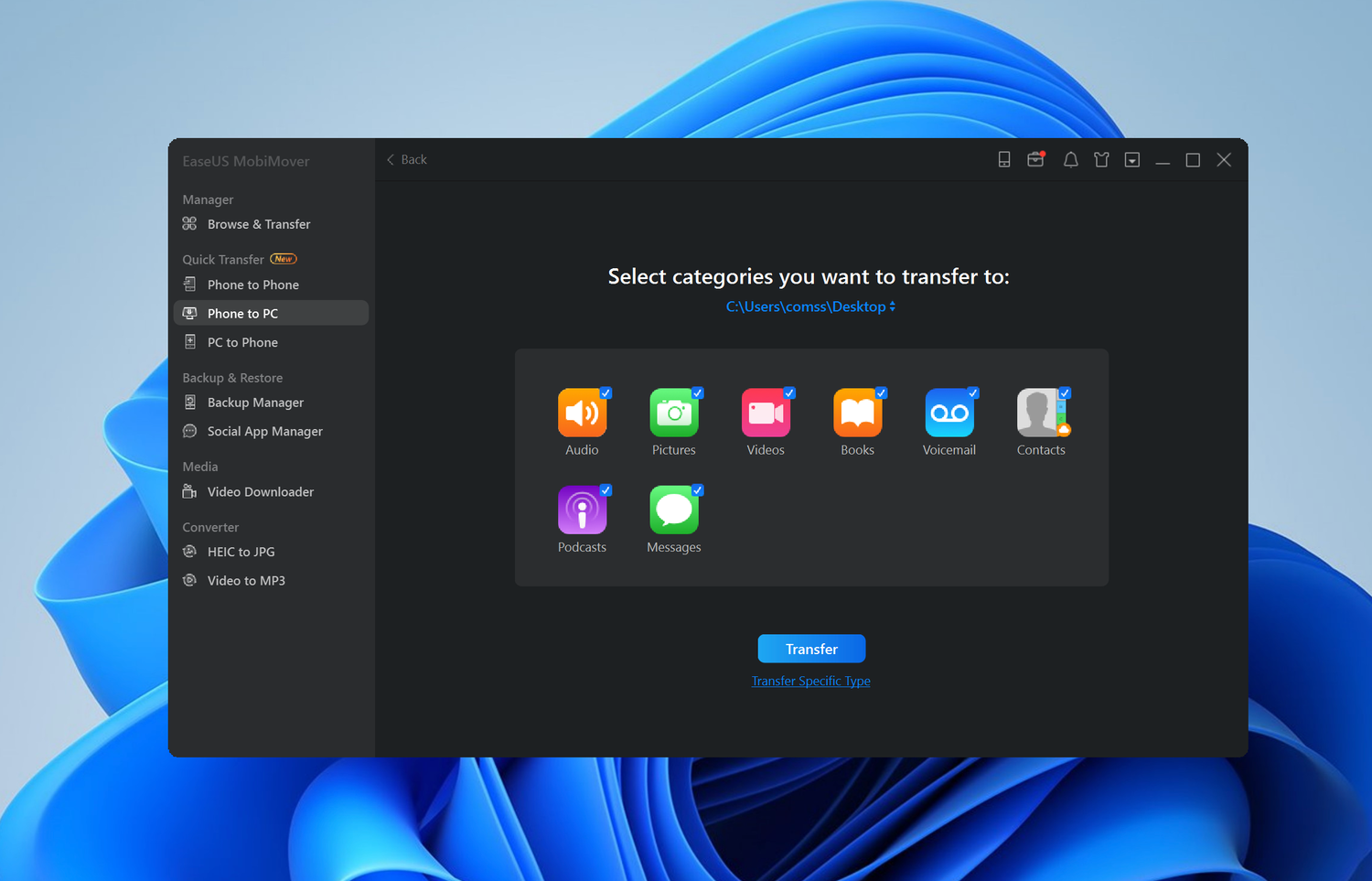 - Управление данными iPhone: Приложение упрощает передачу данных между телефонами, включая передачу данных с iPhone на iPhone, между iPhone и Android, а также с Android на Android. Оно также позволяет создавать резервные копии данных iPhone на ПК.