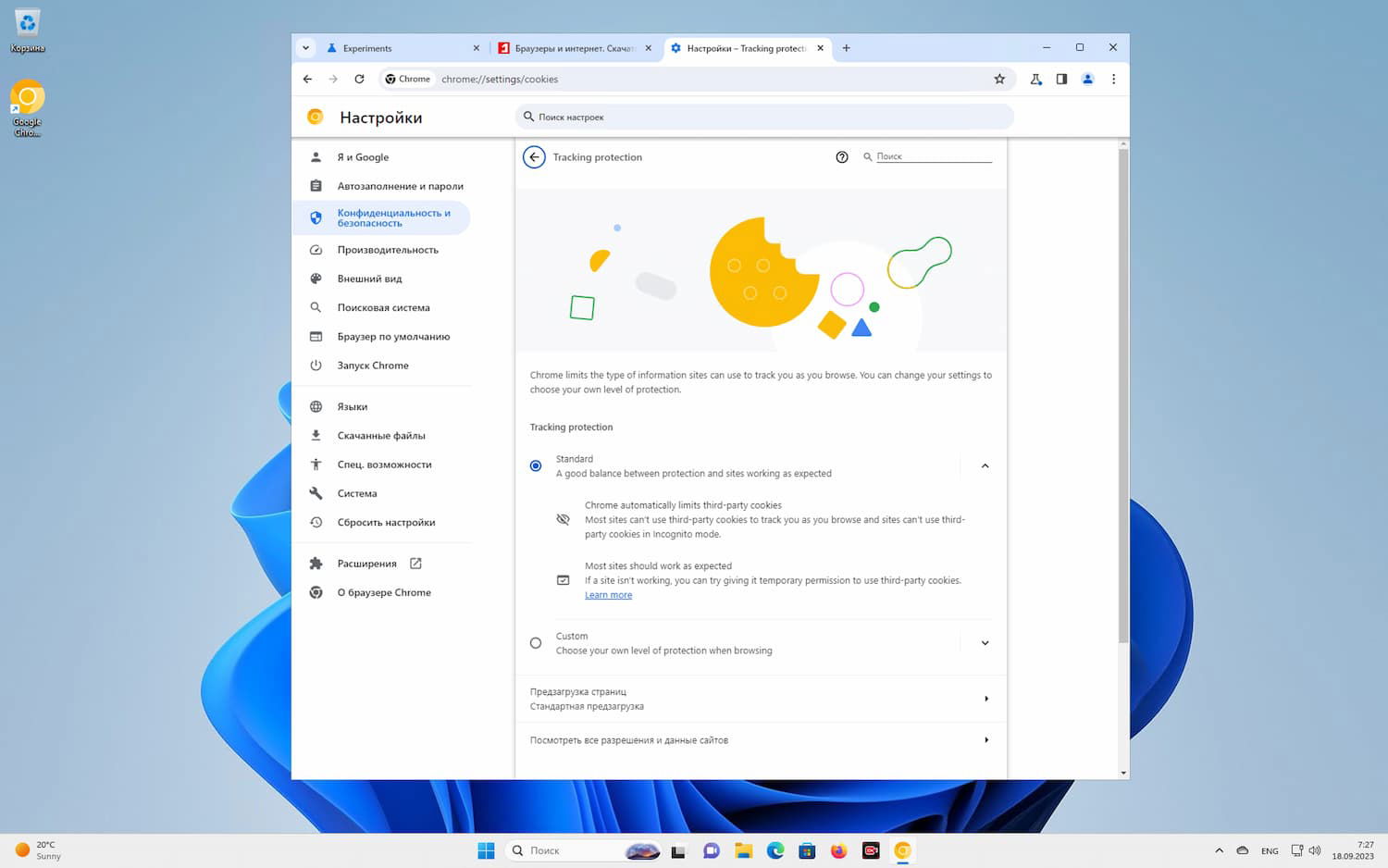 В Chrome Canary уже доступен экспериментальный флаг chrome://flags/#tracking-protection-3pcd, который переносит раздел Сторонние файлы cookie в настройках в новый раздел защиты от отслеживания (Tracking Protection). Защита от отслеживания доступна в некоторых браузерах на Chromium, а также в Firefox.