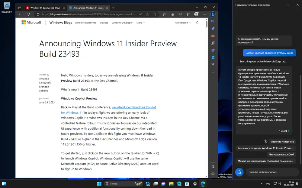 Ранее был замечен активационный пакет с названием Microsoft-Windows-23H2Enablement-Package, который пока неработоспособен. Как только он заработает, можно будет активировать новые функции, например Windows Copilot, разгруппировку приложений на панели задач и др.