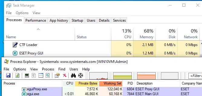 На официальном форуме ESET с прошлого года обсуждается проблема, связанная с процессом eguiProxy.exe (ESET Proxy GUI) в операционных системах Windows 7 и Windows 8.