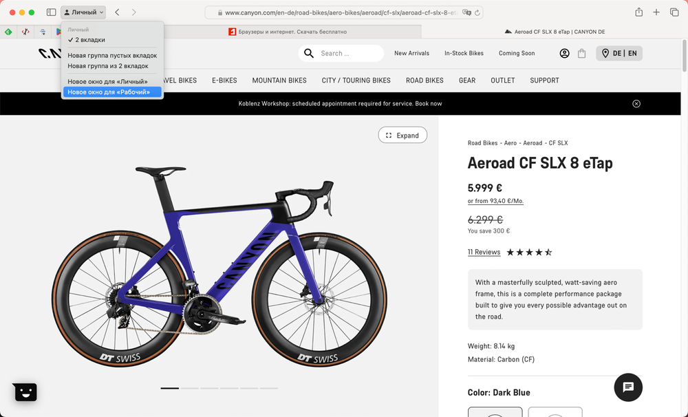 В Safari 17 появилась возможность одновременного выбора нескольких вкладок. Функция будет полезна при создании новой группы вкладок с выделением, а также для перемещения вкладок на панели вкладок.