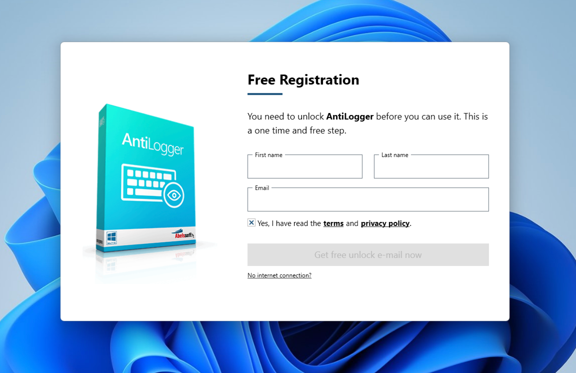 Для получения бесплатной лицензии Abelssoft AntiLogger выполните следующее: