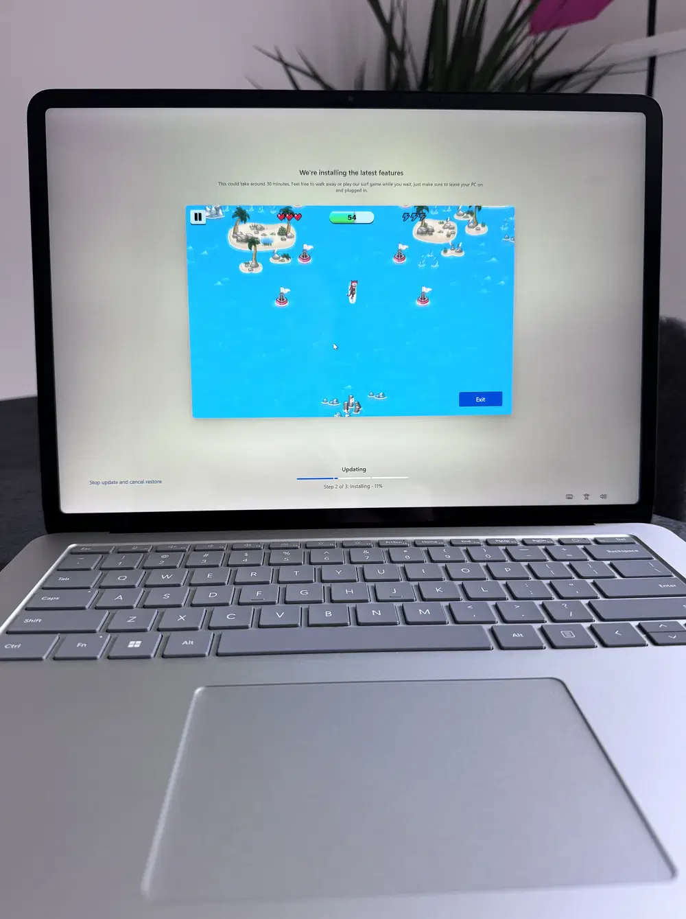 Теперь пользователям предлагается сделать перерыв и поиграть в казуальную игру Surf во время установки обновления. Впервые данное изменение обнаружено изданием The Verge во время установки Windows 11 на ноутбук Surface Laptop Studio 2.