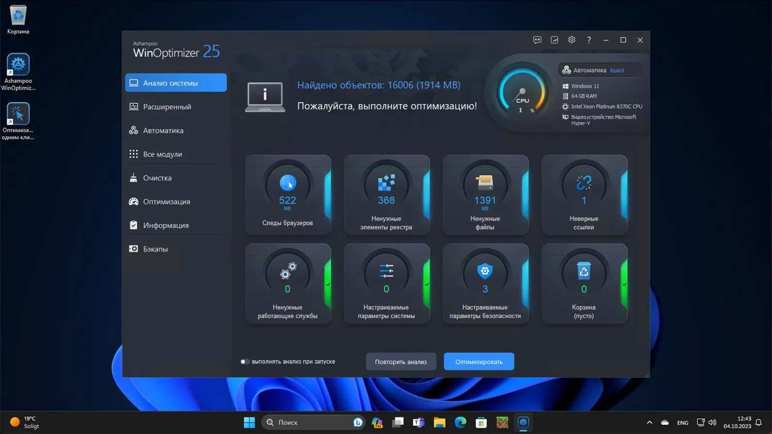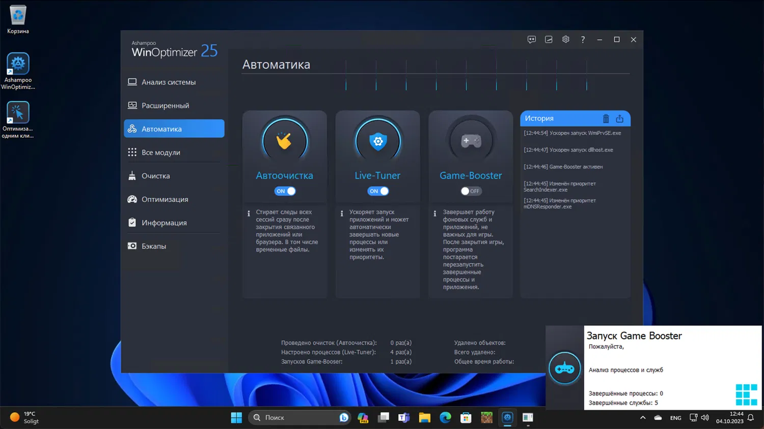 - Автоматическая оптимизация системы для улучшения производительности компьютера.