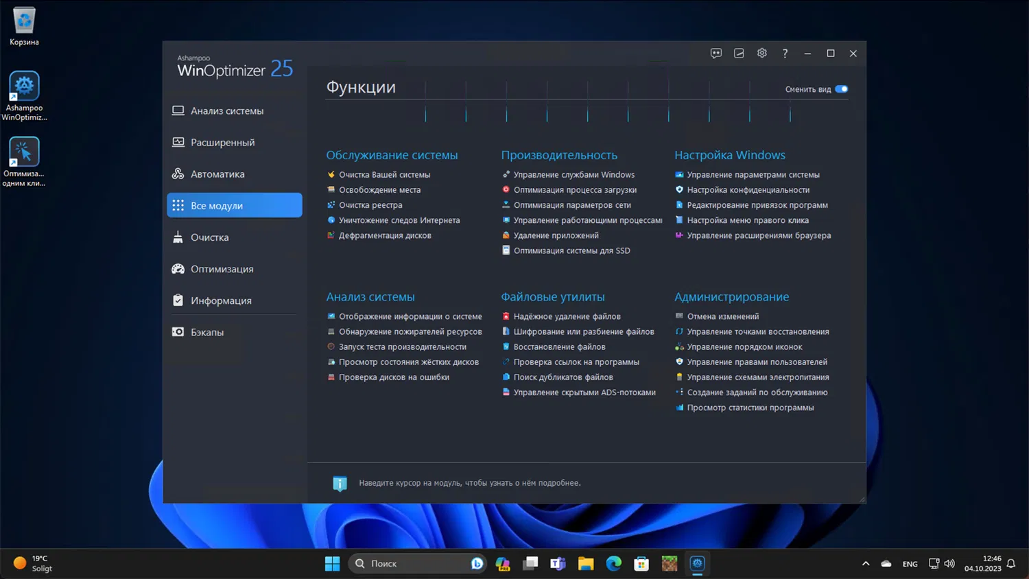 Программа Ashampoo WinOptimizer 25 предлагает множество функций для оптимизации системы, очистки и поддержания производительности вашего компьютера. Ниже представлены некоторые из функций и возможностей, которые предлагает Ashampoo WinOptimizer 25: