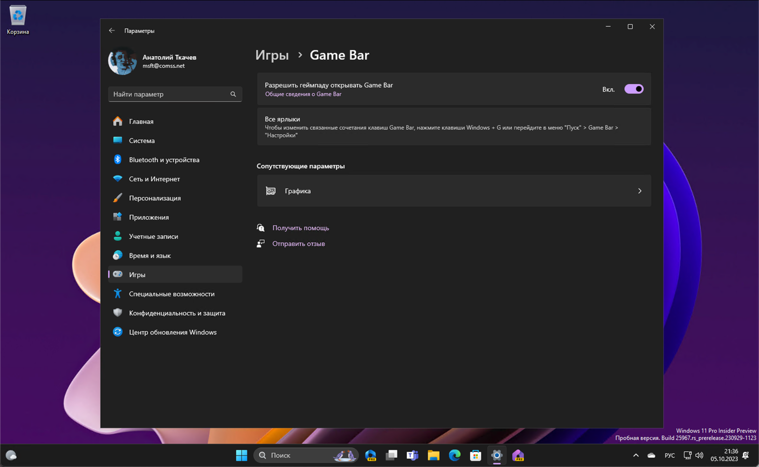 - Xbox Game Bar теперь называется Game Bar и находится в "Параметры" > "Игры".